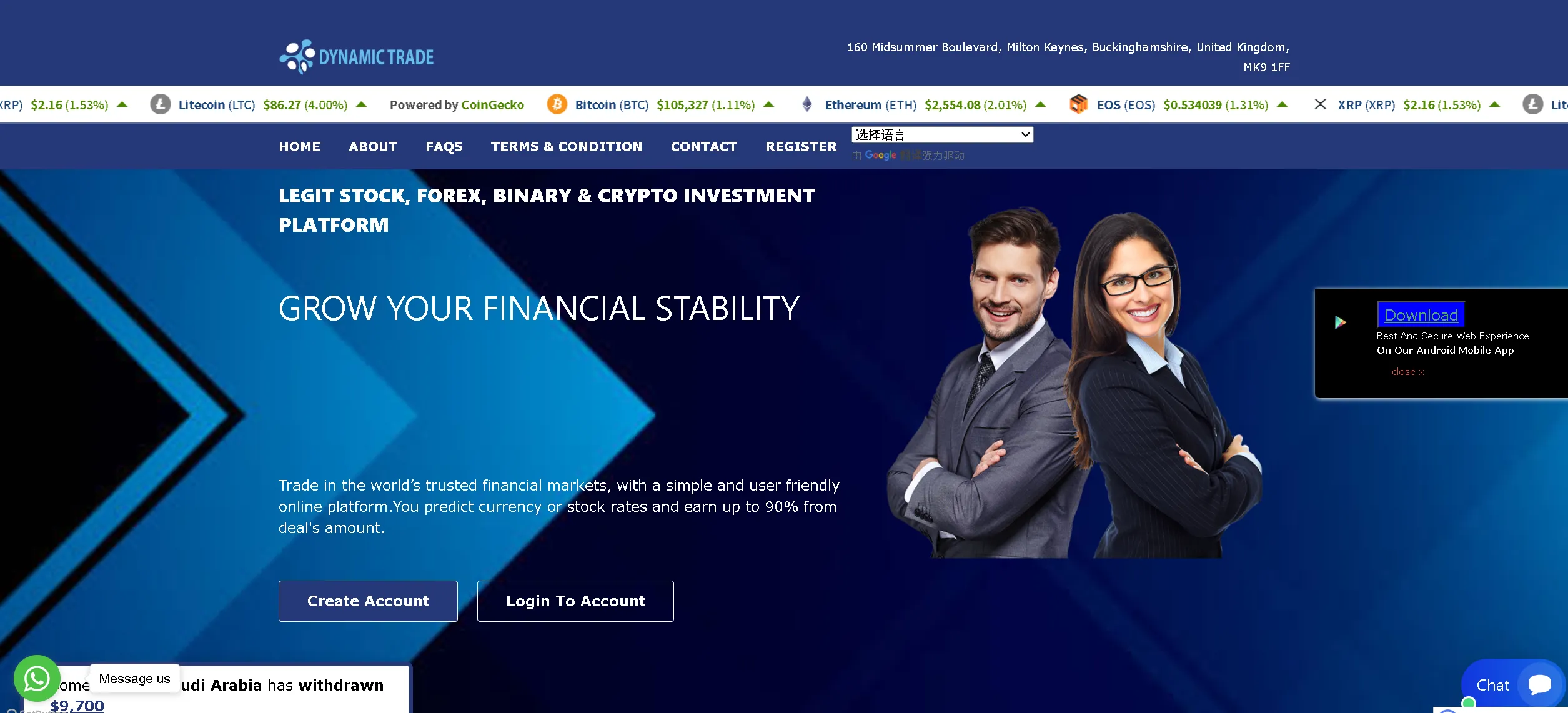 Dynamic Trade is an online trading platform for global investors, claiming to provide trading services for a variety of financial instruments, including foreign exchange, stock contracts for difference (CFDs), cryptocurrencies and commodity futures.Support Languages